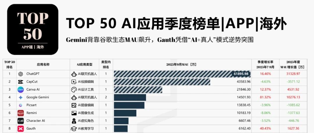 海外AI应用行业全景丨万字长文丨2025年9月丨赛道格局 + 赛道之王 + TOP 50 AI应用 + 增长之星丨Xsignal