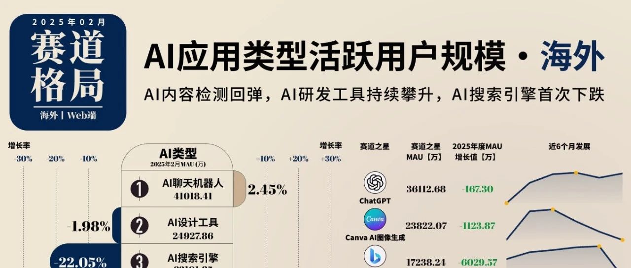 X博士带来2025年2月中国AI应用行业全景数据及分析,包括“TOP 50 AI 应用”、“赛道格局”、“赛道之星”和“增长之星”四大数据产品以及深度分析,为你提供全面且深度的行业洞察。