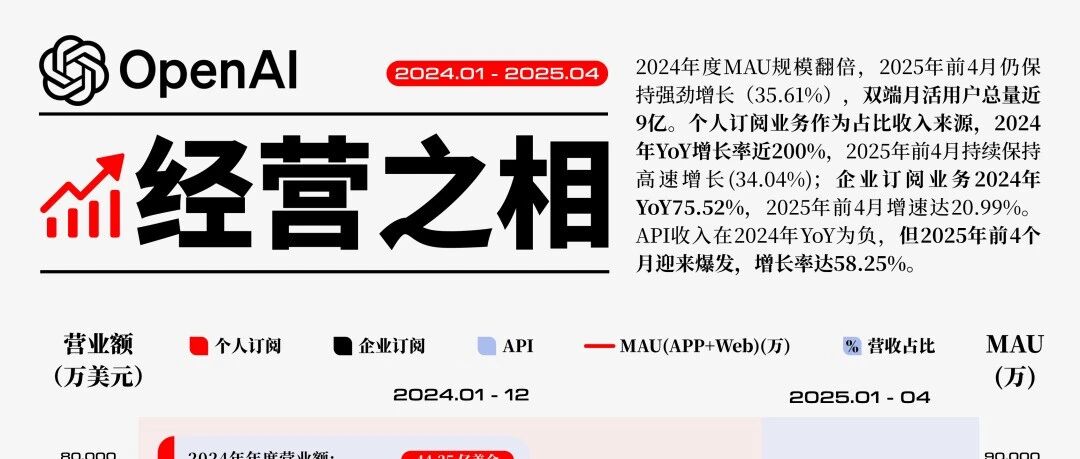 本文以Xsignal AI Holo数据库中的数据为基础,对ChatGPT在2024年以及2025年前4个月的运营表现进行了详细的展示和深入的分析解读,旨在为中国的大模型企业和人工智能应用公司提供从经营角度出发的对标分析和参考借鉴。