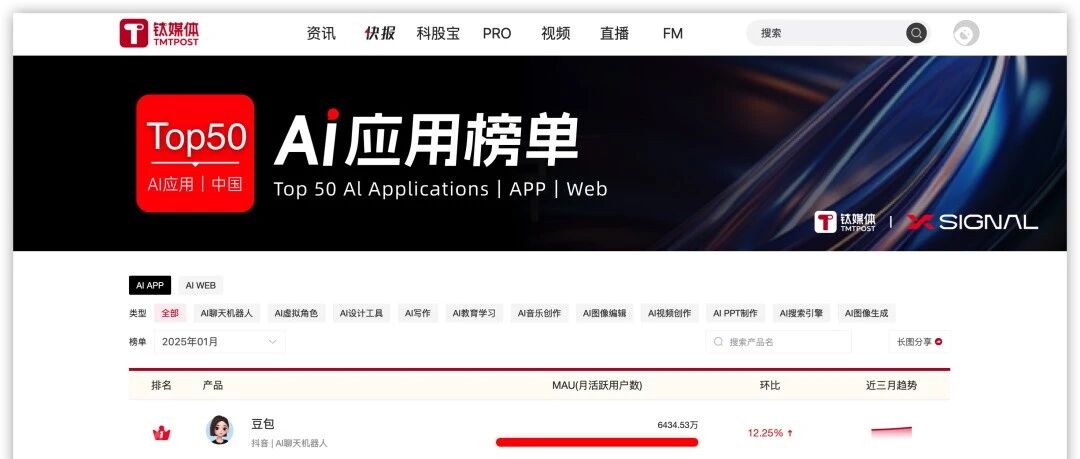 钛媒体 x Xsignal丨联合发布TOP 50 AI应用月度榜单