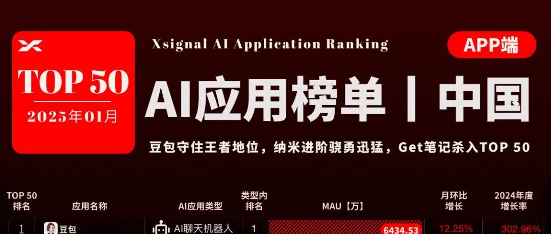 国内AI应用行业全景丨万字长文丨2025年2月丨赛道格局 + 赛道之星 + TOP 50 AI应用 + 增长之星丨Xsignal