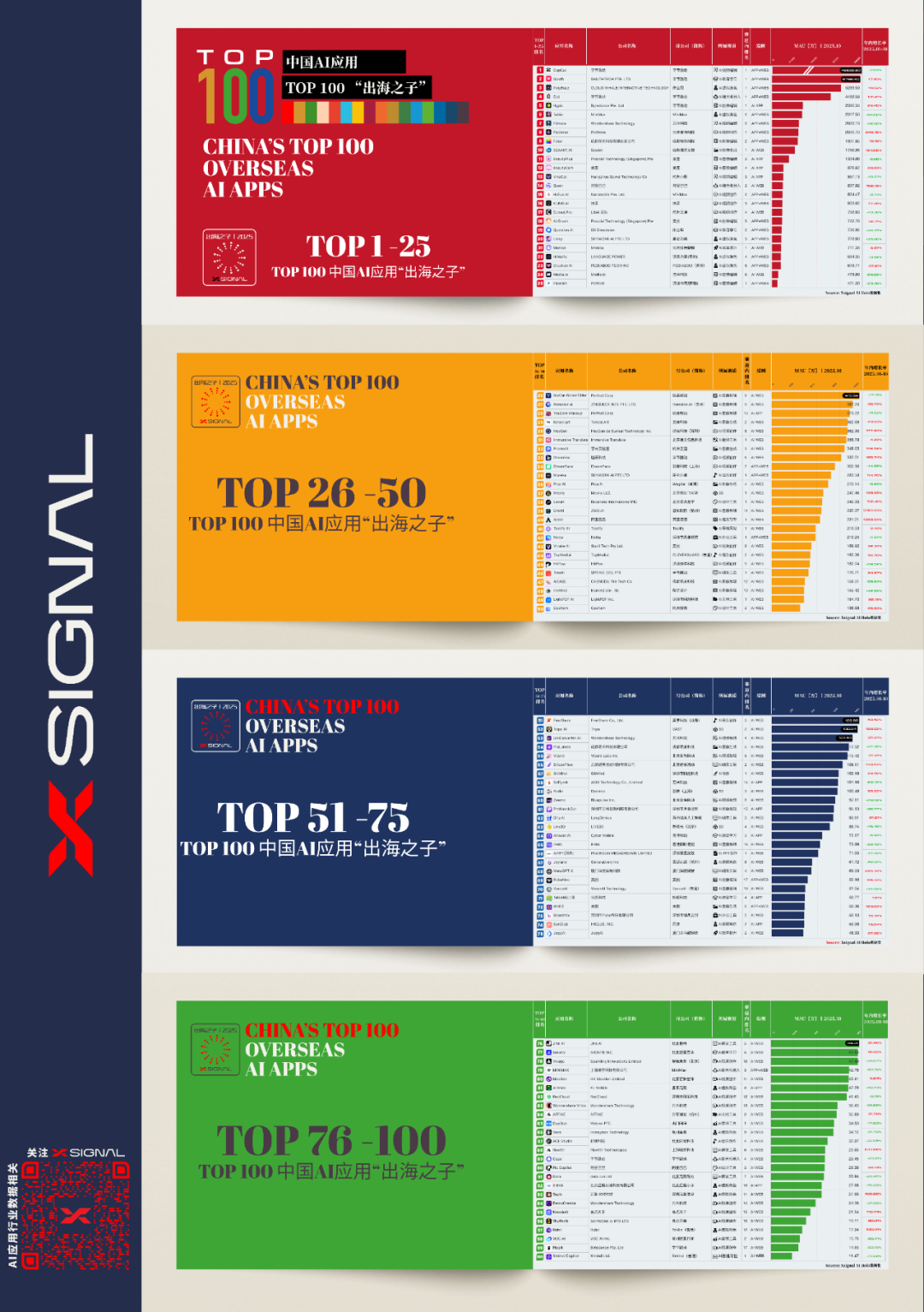 如果说国内市场的竞争是一场“存量博弈”的内卷,那么中国AI的出海征途,则是一场在全球版图上“逐光而行”的壮阔远征。作为本次大会主论坛的特邀发布,该报告依托Xsignal AI Holo(AI全息)数据库,基于TOP 100 中国“出海”AI应用的用户规模、赛道分布、类型特征及出海企业战略解析,全面展现中国AI应用在全球市场的迅猛跃升态势。