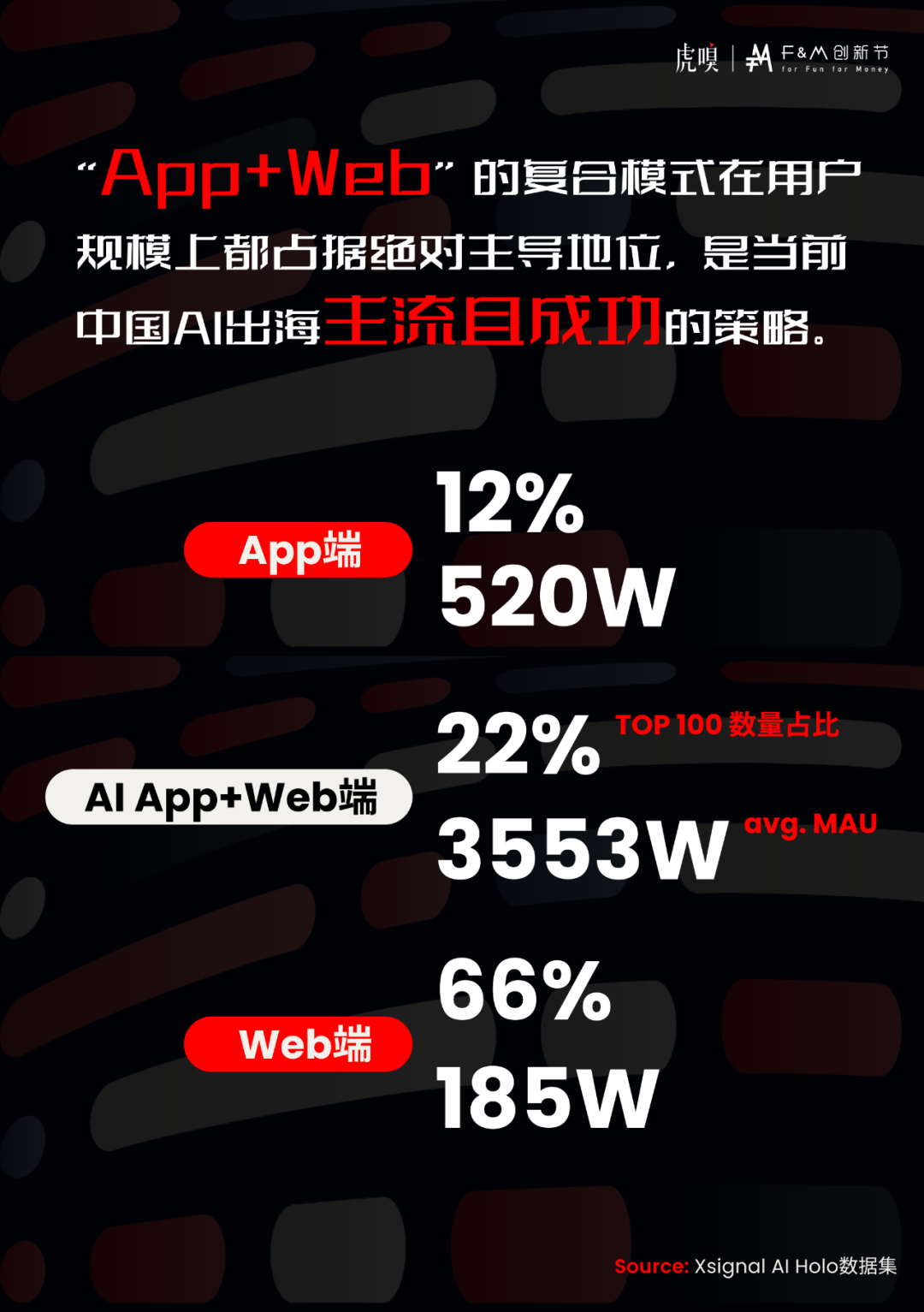“ App+Web”的复合模式在用户规模上都占据绝对主导地位,是当前中国AI出海主流且成功的策略