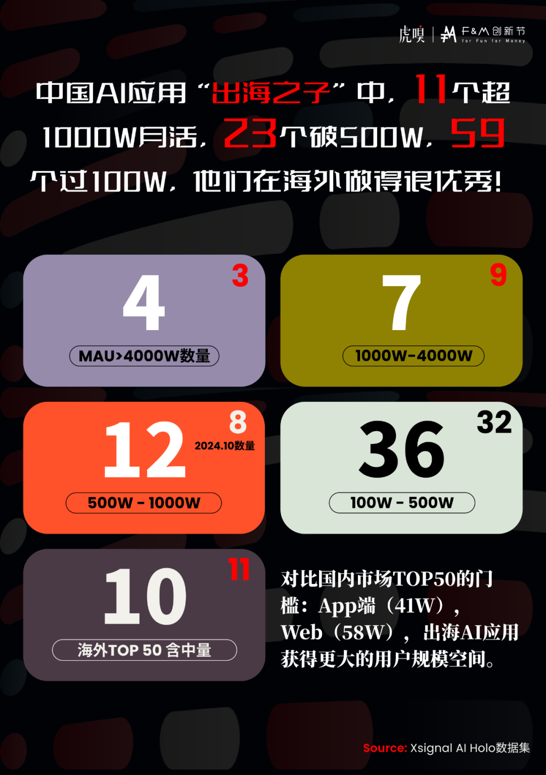 【2025年11月23日·北京】 在2025 虎嗅F&M 创新节的主论坛,Xsignal 创始人兼首席执行官刘震博士隆重发布其重磅数据报告《TOP 100中国AI应用“出海之子”|2025》。作为大会主会场特邀演讲嘉宾,刘博士发表主题演讲《逐光者的远行|中国AI出海力量在全球版图上的崛起》,深度解析中国AI应用走向海外市场的发展现状、竞争优势、增长趋势及成功要素。